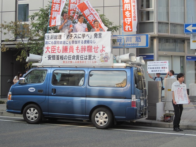 麻生副総理が行った「ナチスの手口に学べ」発言への抗議宣伝をしました。