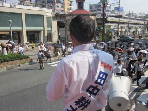 今日の耕太郎 2013/07/10 更新 10日、兵庫県庁前、神戸元町東口で朝宣伝 Tweet 知事選告示7日目の朝、田中耕太郎候補は、 朝7時15分から兵庫県庁前で出勤する県職員などに 「景気、くらし、平和の3つの転換を訴えました。 続いて、8時20分からは、 神戸元町東口でも多くのサポーターとともに、 県政の転換を呼びかけました。